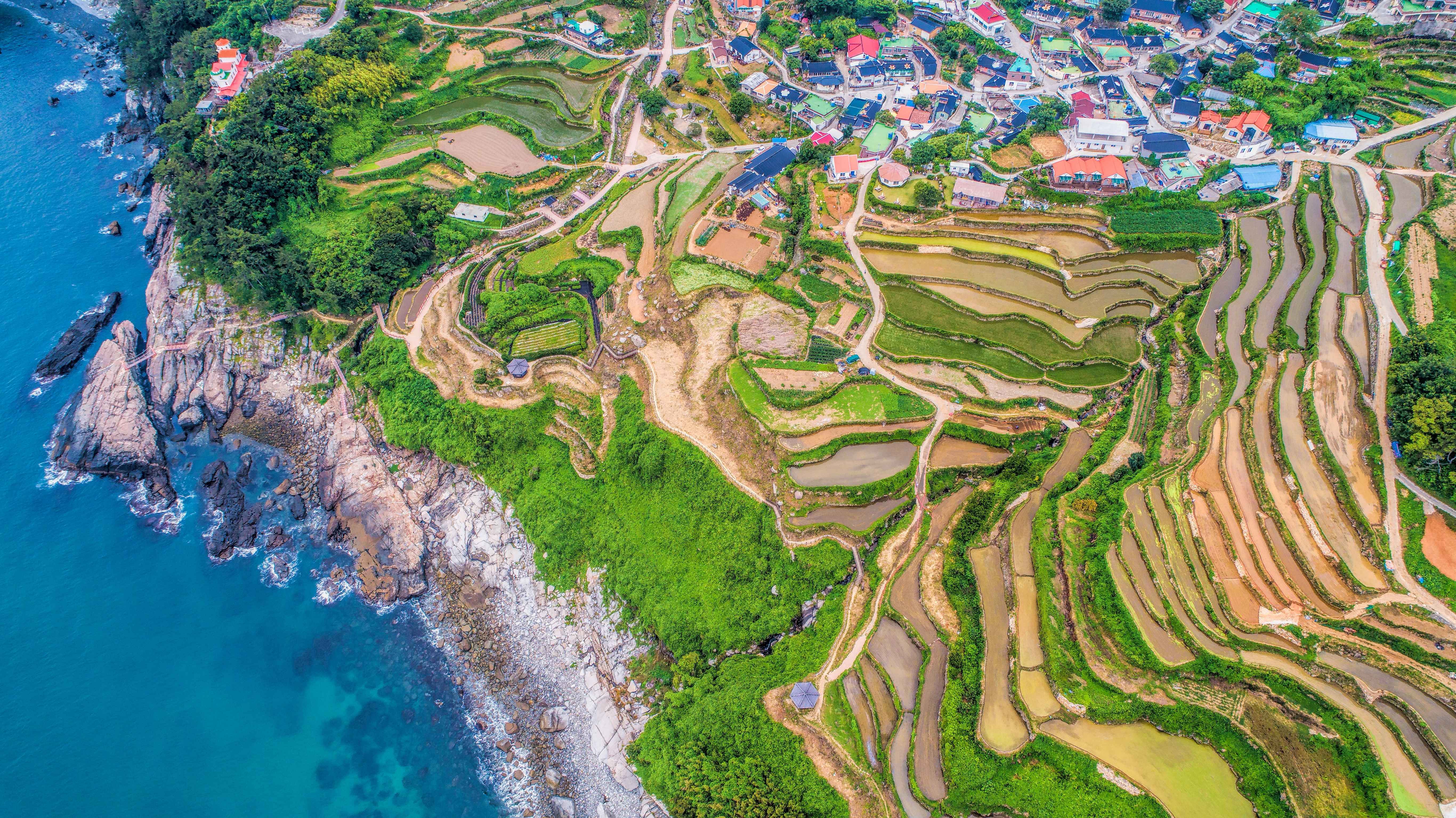 다랭이 마을의 경이로운 계단식 논 풍경