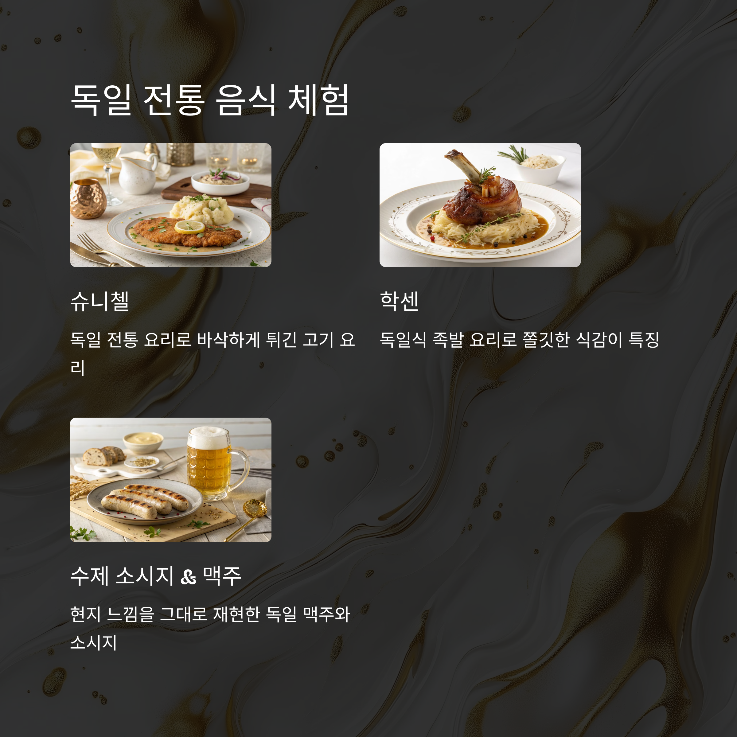맛볼 수 있는 식당들이 자리하고 있습니다. 독일 맥주와 함께 제공되는 이 요리들은