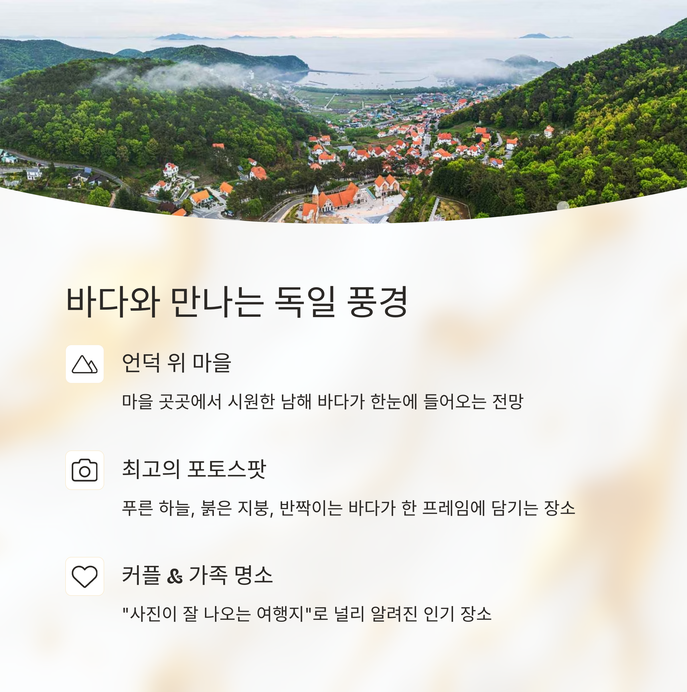 남해 바다와 어우러진 독특한 풍경 덕분에 사계절 내내 많은 여행객이 찾는 명소로 손꼽힙니다.