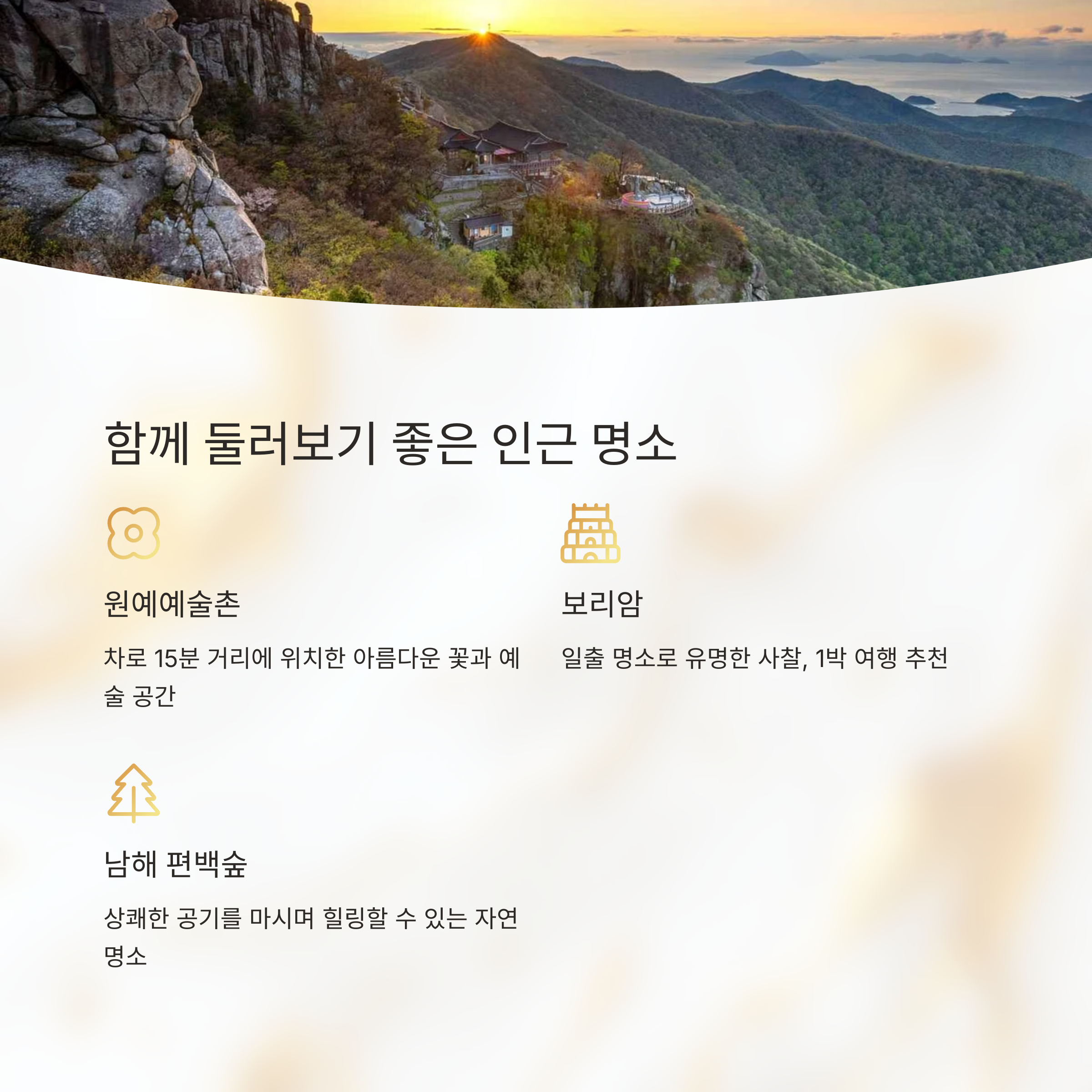 더 풍성한 여행이 될 수 있습니다. 특히 보리암은 일출 명소로도 유명하니