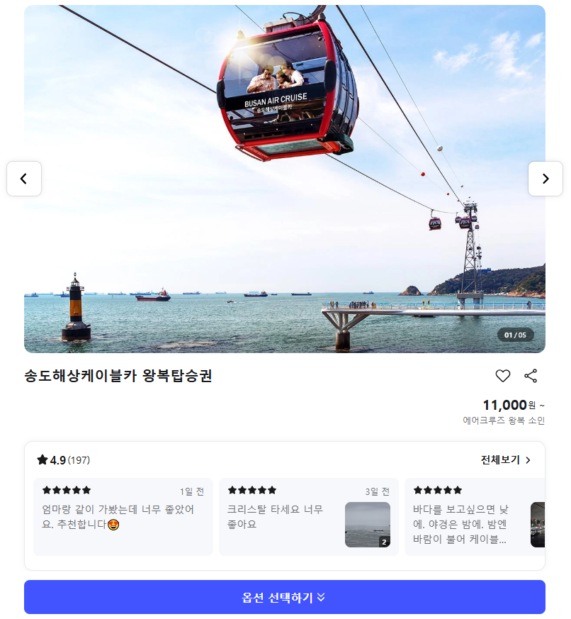 | 조*리 | 바닥이 뚫려있어서 더 인상 깊었던 케이블카예요!! 꼭 한번 타보세요. | 2025. 5. 22. |