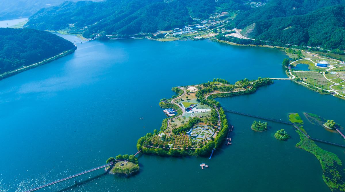 맑은 호수 위에 떠 있는 한반도 모양의 섬, 그 위를 걷는 상상, 해본 적 있으신가요?