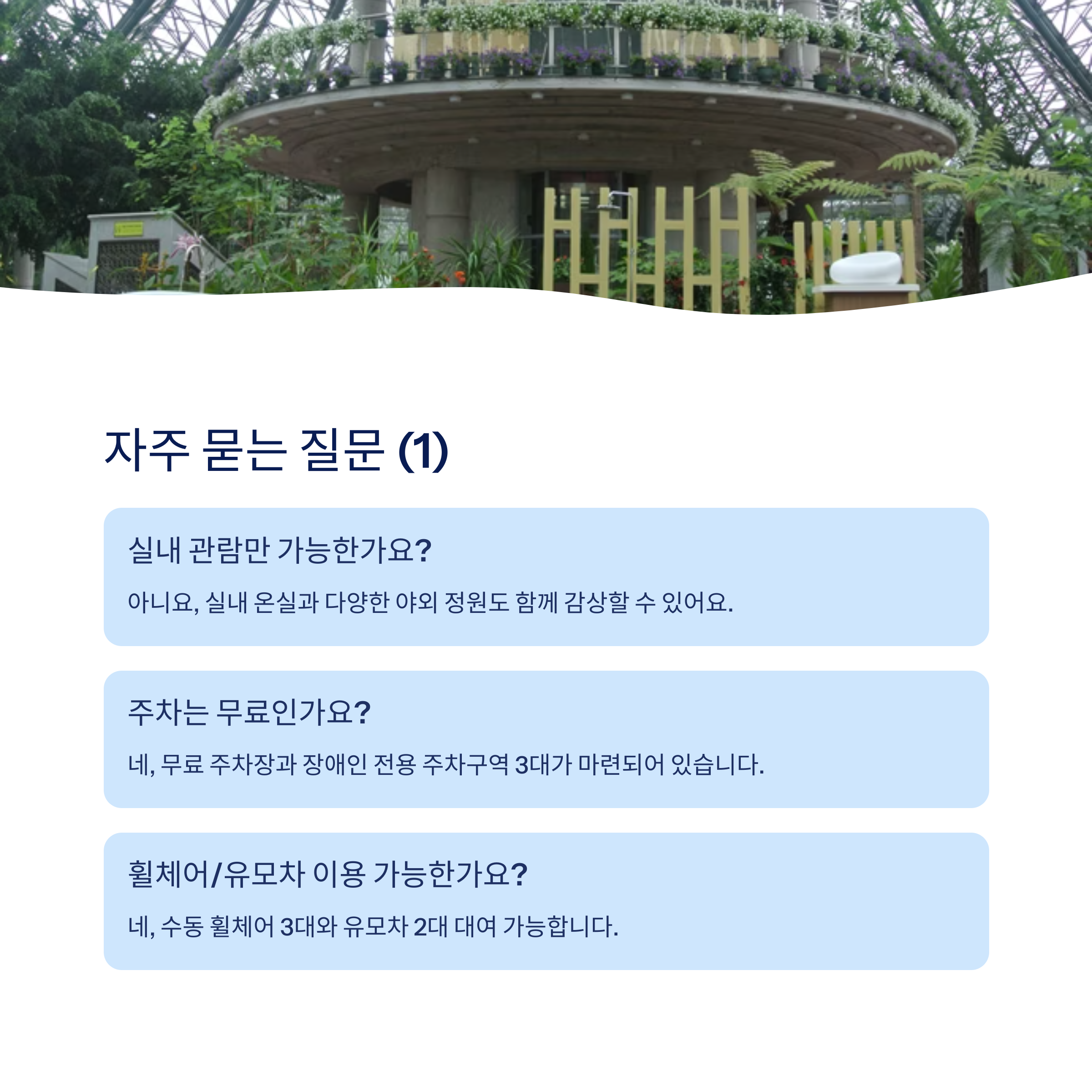 Q 여미지식물원은 실내 관람만 가능한가요?