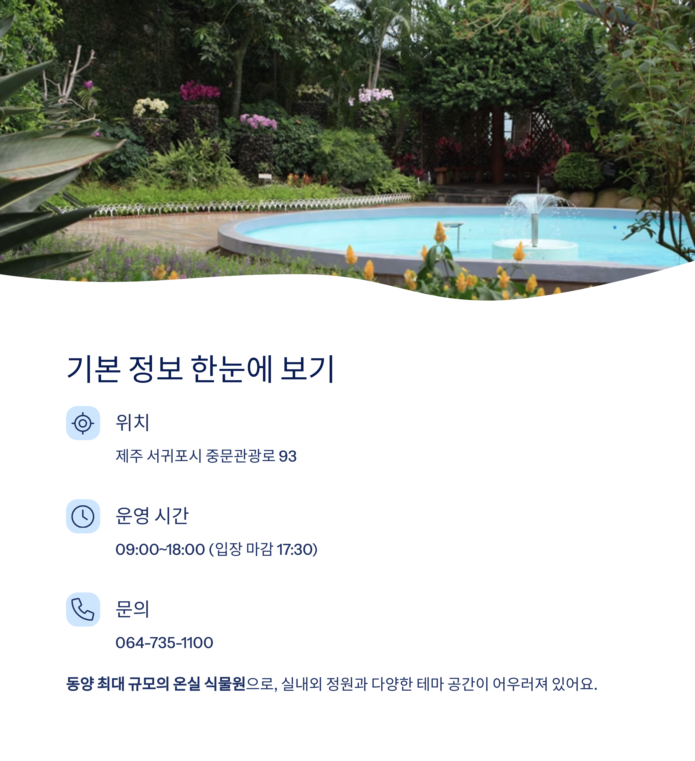| 관람 동선 | 온실 → 전망대 → 야외정원 → 제주자생식물원 |