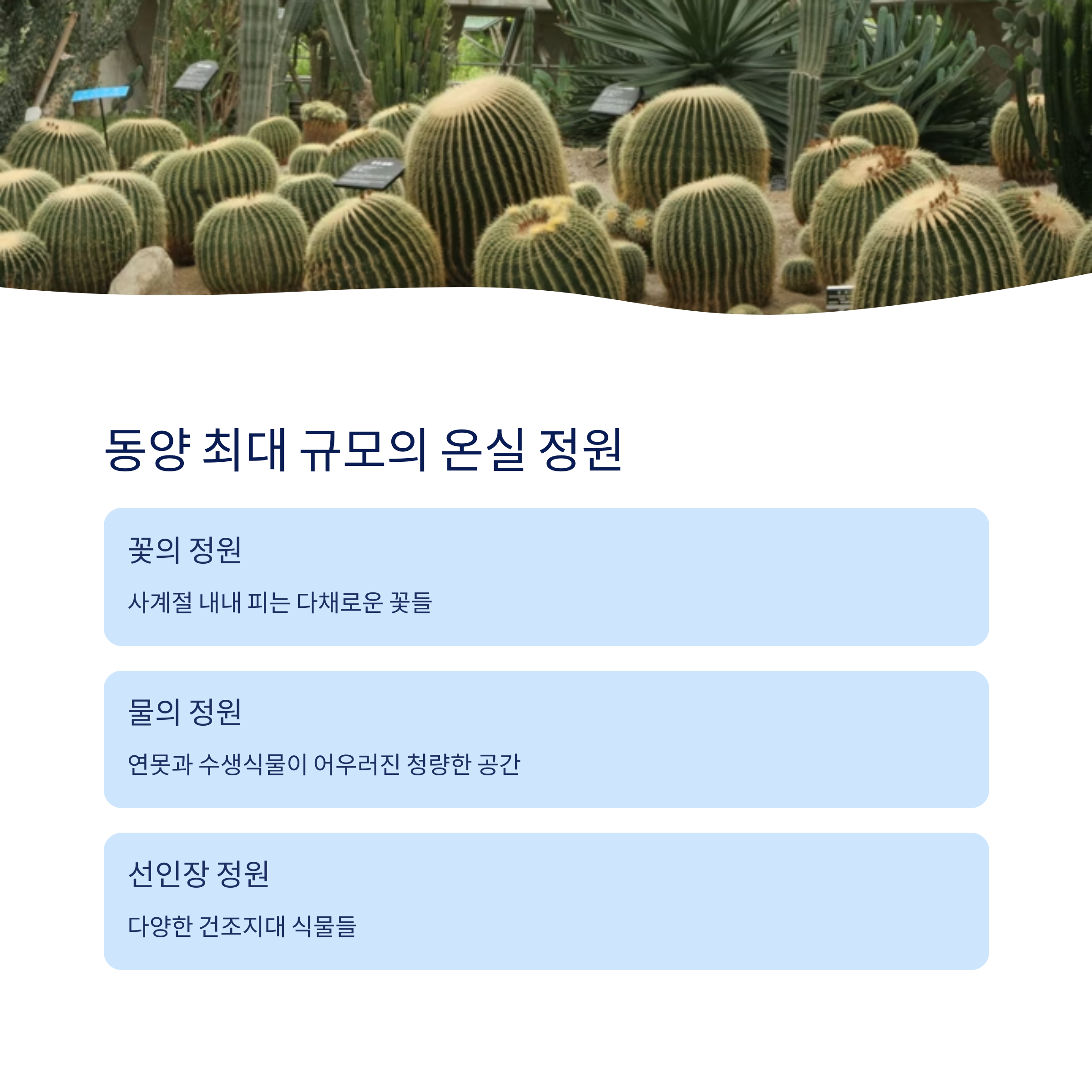• 선인장 정원: 다양한 건조지대 식물들을 볼 수 있어요.