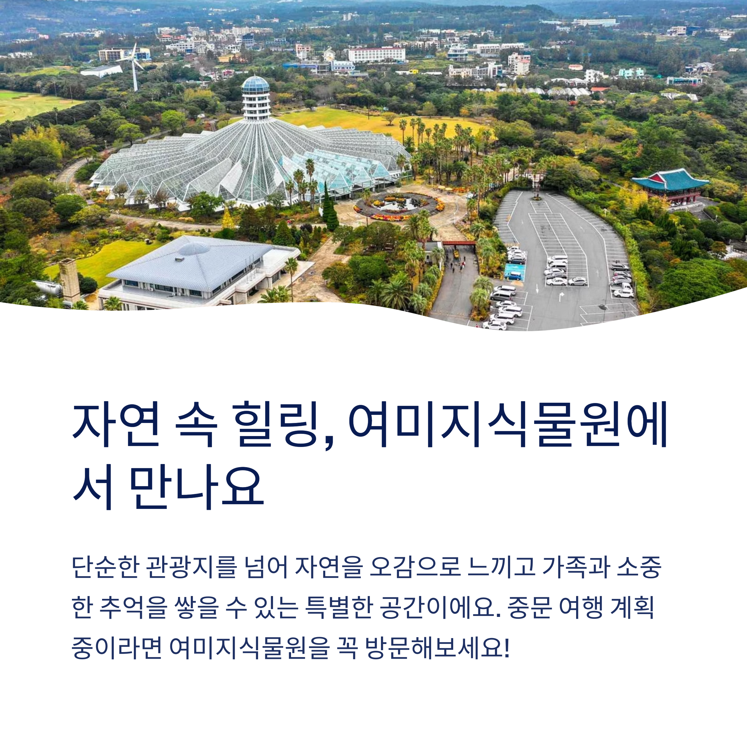 동양 최대 규모의 온실 식물원이 제주도에 있다는 사실, 알고 계셨나요? 가족과 함께라면 더욱 특별해지는 여미지식물원의 매력을 소개합니다.
