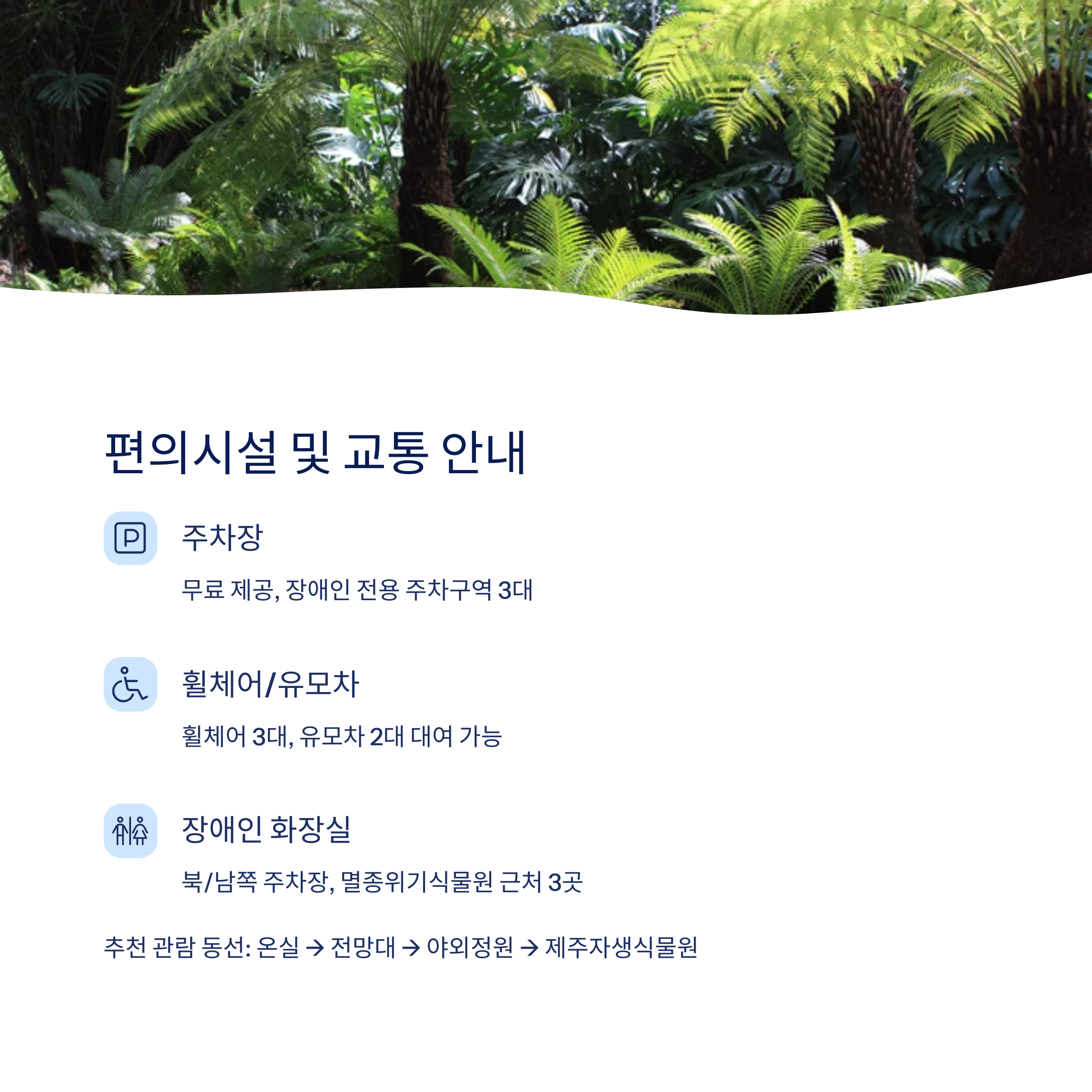 관람 동선 온실 → 전망대 → 야외정원 → 제주자생식물원